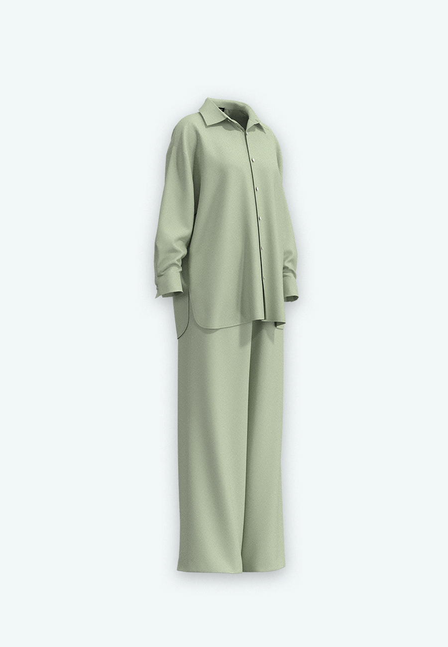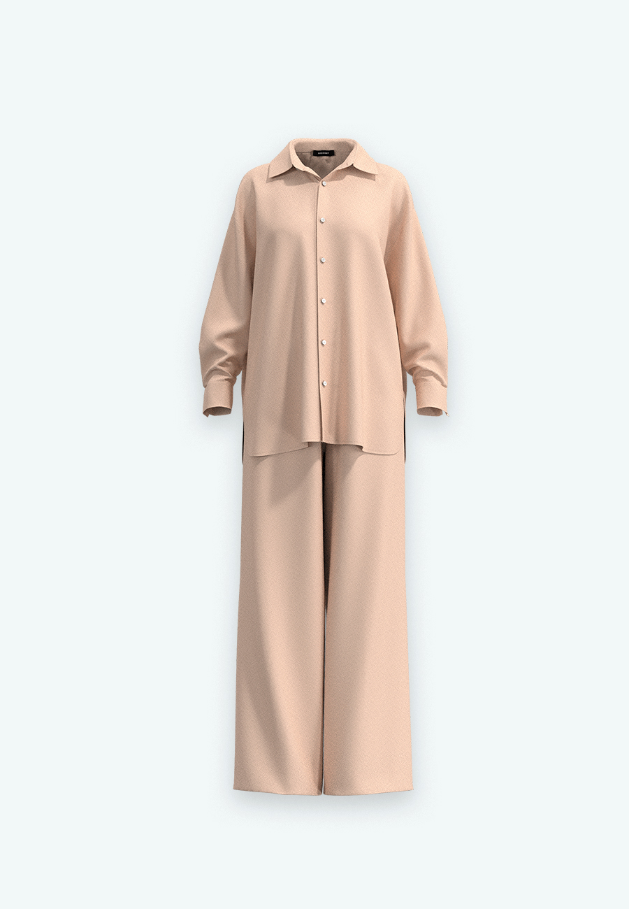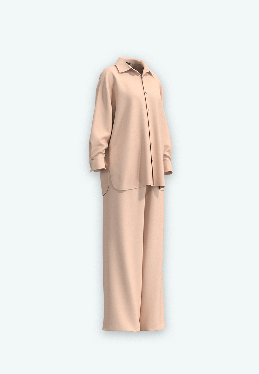 Костюм рубашка, брюки свободного кроя.