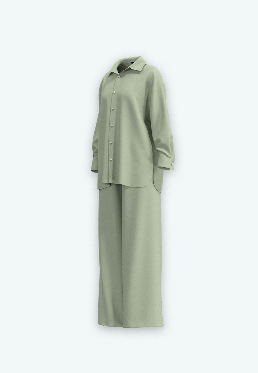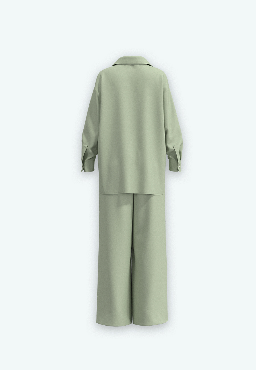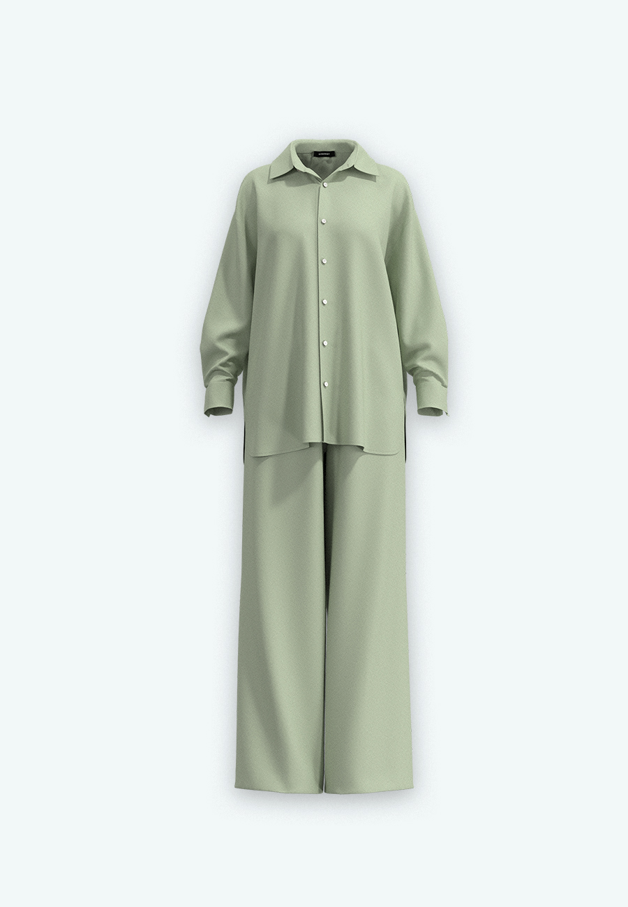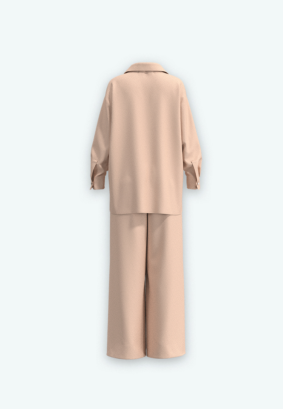 Костюм рубашка, брюки свободного кроя.